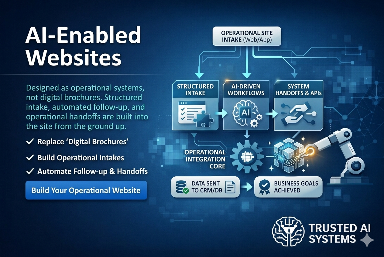 Designed as operational systems, not digital brochures. Structured intake, automated follow-up, and operational handoffs are built into the site from the ground up.