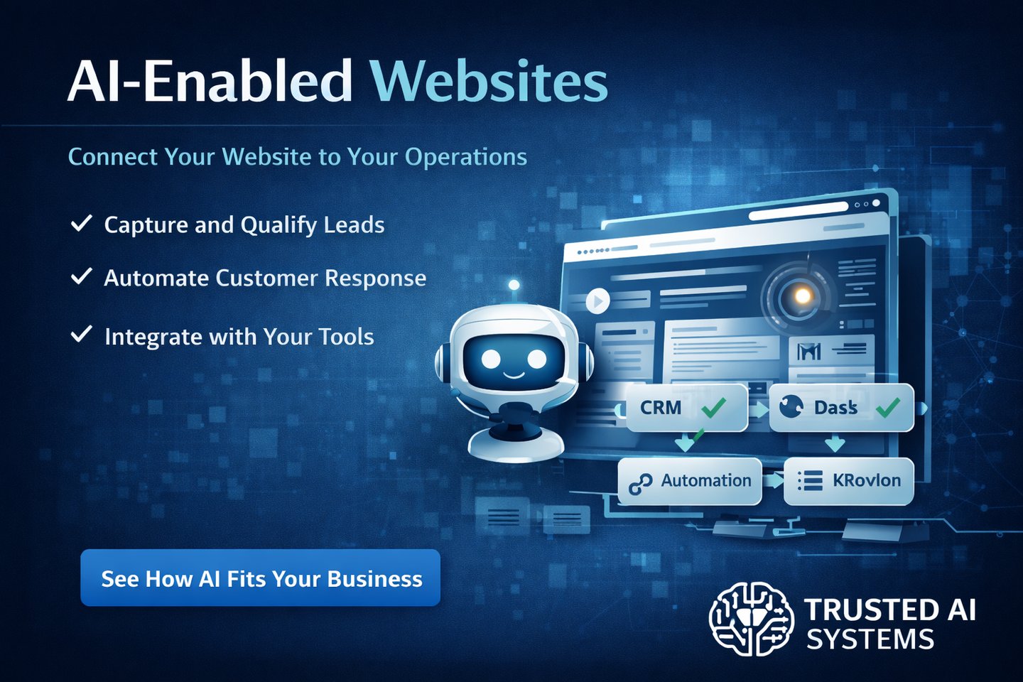 An AI-enabled website built by TAS is not a website with a chatbot added. It is a system designed from the ground up around how your business captures, qualifies, and converts opportunities. The design, the intake logic, the AI agent configuration, and the operational handoffs are all built to work together as a single system.